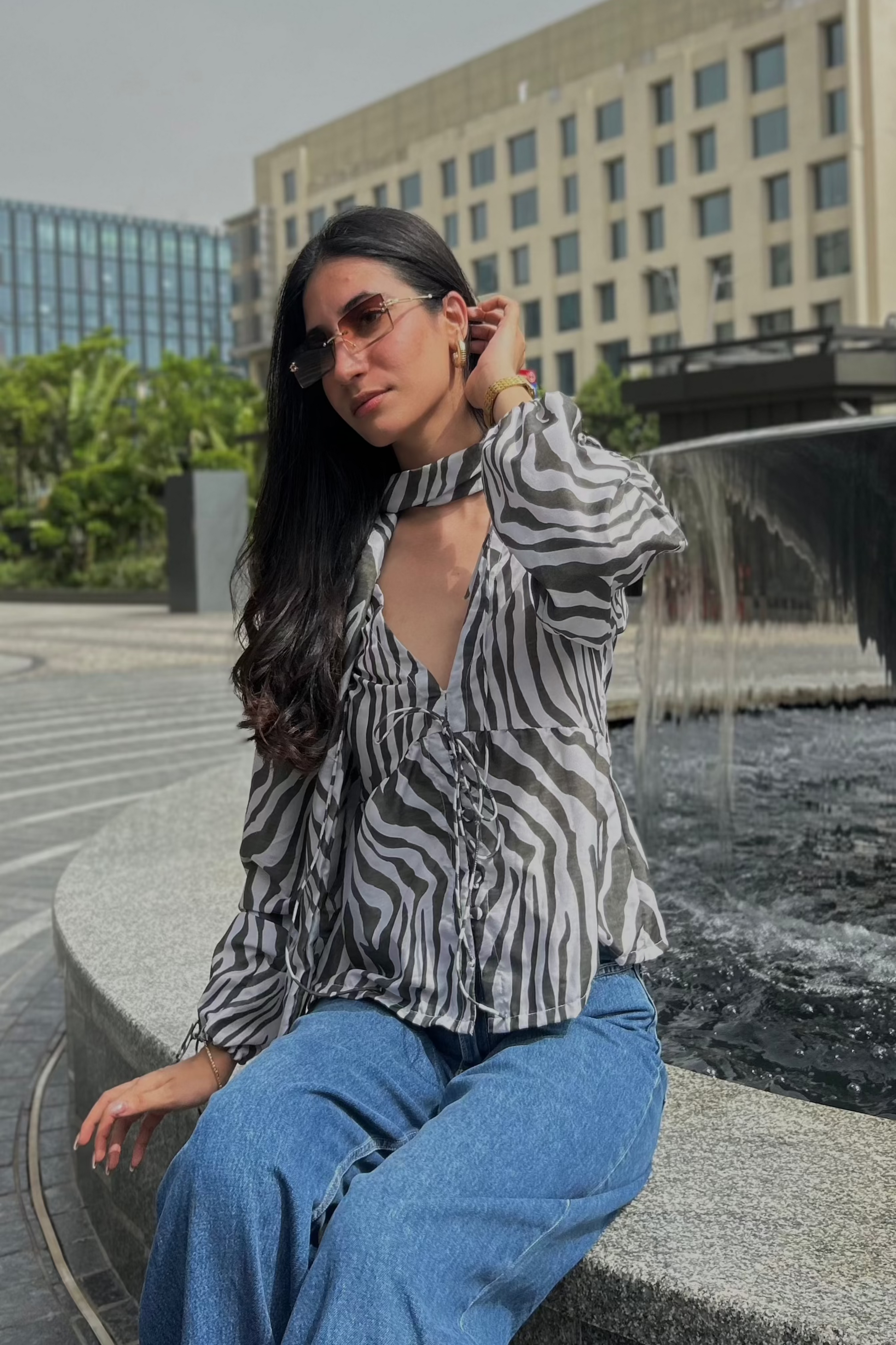 It’s the kind of blouse that balances grace with fun, made for slow sips, loud laughs, and long table conversations.
